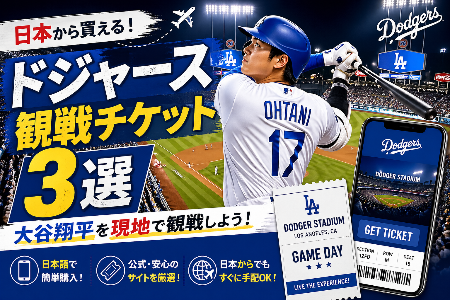 日本からドジャースのチケットを購入する方法をまとめると: