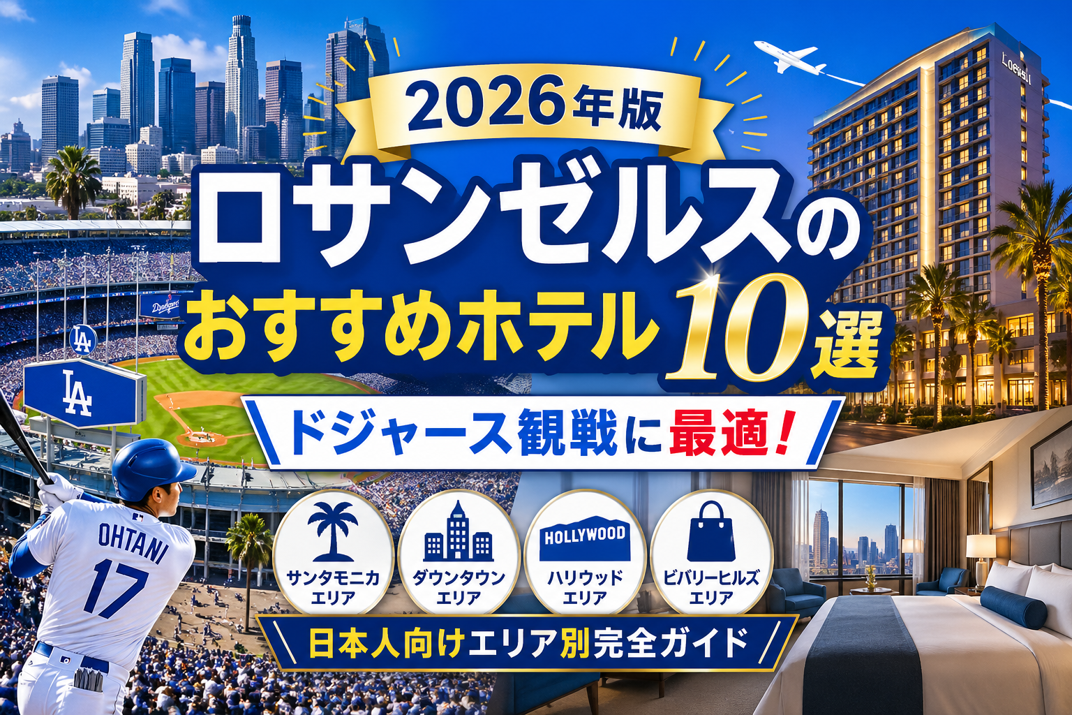 「ドジャースの試合を生で観たい」「せっかくならLAを満喫したい」――そんな夢を持つ日本人旅行者にとって、ホテル選びは旅の成否を分ける重要なポイントです。LAは広大な都市で、エリアによって治安・アクセス・価格が大きく異なります。この記事では、ドジャース観戦を目的とした日本人旅行者向けに、エリア別おすすめホテル10選を徹底解説します。